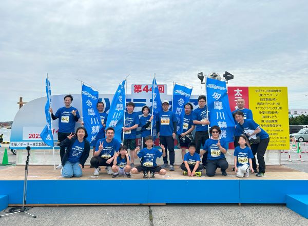 当社は特設会場でブースを出展し、ドライフルーツを来場者に配布しました。また、「3kmタイムなし」の種目へのぼりを持って参加したほか、5km、10km、ハーフマラソンに健脚自慢の社員が出場。社員それぞれが初夏のマラソン大会を楽しむことができました。