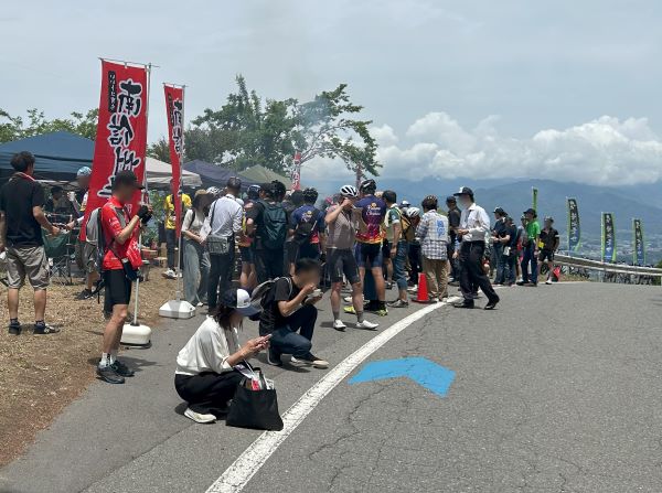 コースは下久堅小学校のグラウンド前を発着点に周回する120.9km。最高標高点561mの山岳ポイントに向かい、最大勾配10%を超える急坂を駆け上がるTOJ屈指の「山岳ステージ」です。下りは一転、細かなカーブが連続し、高度なコントロールテクニックと集中力が求められます。